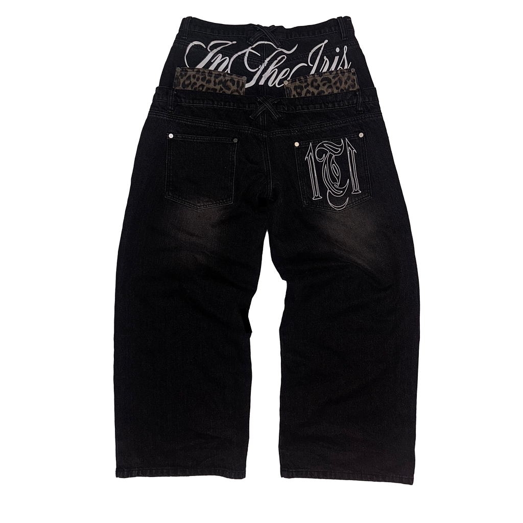 Intheiris leopard double waist jeans